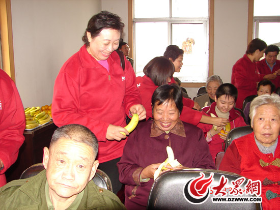 濟寧福利院情暖夕陽安利志愿者霍忠景為老人剝香蕉