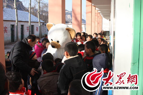 由志愿者侯召亮扮演的“北極熊”深受濟(jì)南劉家慈安小朋友的歡迎