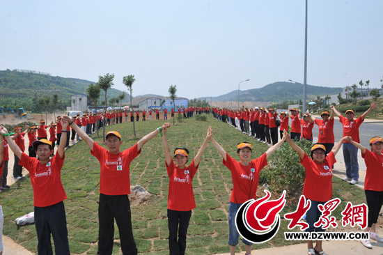 濟(jì)南奧體中心,志愿者們在展示自己的勞動成果