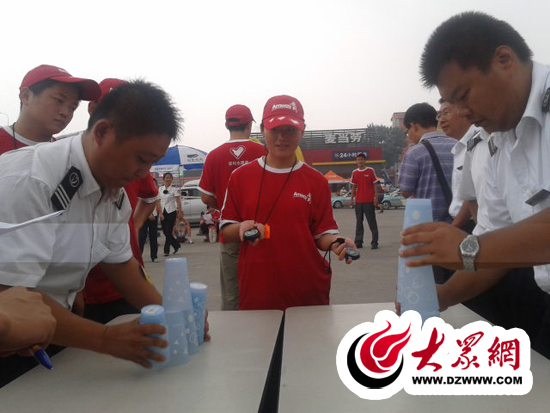 在濟(jì)南長(zhǎng)途汽車站的活動(dòng)中,志愿者為參賽選手們計(jì)時(shí)