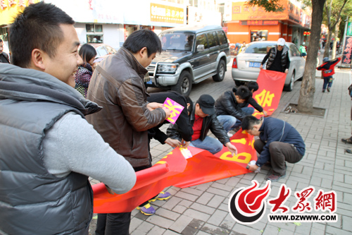 “我們從大眾論壇上看到買愛心白菜的倡議帖,就約好開車一塊來,有從章丘的,也有從郭店等郊區(qū)過來的,我們還專門做了橫幅。”趁菜農(nóng)還沒有到,車友們七手八腳把自制橫幅“買顆愛心大白菜 暖暖菜農(nóng)心”掛起做宣傳,車友老許帶來了導(dǎo)游用的麥克掛在腰間,要幫菜農(nóng)“好好吆喝兩嗓子”。