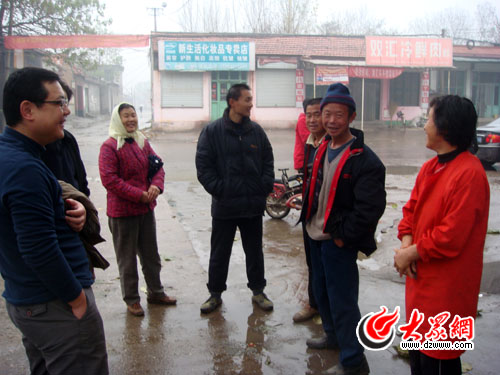 上午10:30,在經過一個小時的雨中顛簸后,大眾報業(集團)發行有限公司的汽車駛入唐王鎮南殷村。天空飄著小雨,路面有些泥濘,在村民的帶領下,大眾報業(集團)發行有限公司副總經理冀魯和記者向村西頭的菜地走去。