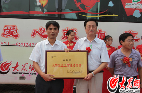 據悉,自1998年實行無償獻血以來,我省無償獻血事業蓬勃發展,目前省城臨床用血百分之百來源于自愿無償獻血。大眾網歷來也重視對愛心公益事業特別是無償獻血工作的宣傳報道和組織實施。因為在無償獻血宣傳組織工作上的突出成績,今年,大眾網和濟南泉城廣場等單位被山東省衛生廳、省紅十字會、濟南軍區聯勤部衛生部聯合授予了“省級無償獻血工作先進單位”。