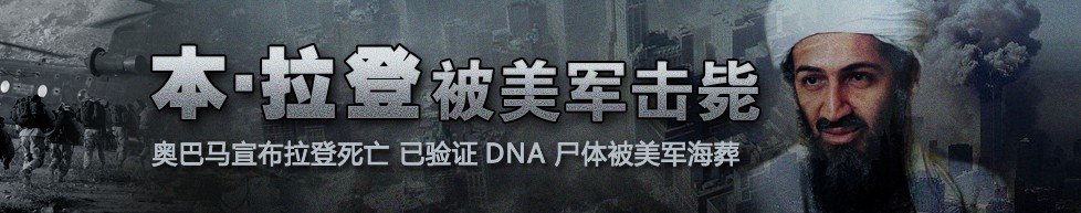 美國總統(tǒng)奧巴馬宣布,本·拉登被美國軍方擊斃,地點(diǎn)位于巴基斯坦境內(nèi),距伊斯蘭堡以北100公里、喀布爾350公里以東的阿伯塔巴德。(詳細(xì)) |