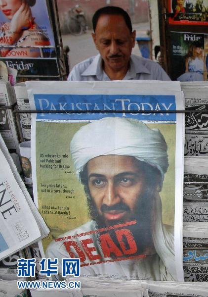 這是巴基斯坦拉合爾的一名商販售賣刊登本拉丹已死新聞的報紙。 新華社路透社
