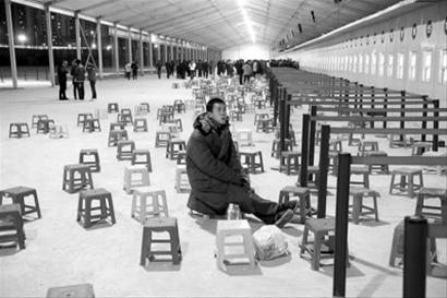 昨晚,從安徽淮北來上海打工的趙立春正盯著鐵路春運(yùn)的信息屏幕上的信息。他本來已經(jīng)做好了排一夜隊(duì)買火車票的準(zhǔn)備,但是到了售票點(diǎn)才知道,為了讓買票的旅客不在寒風(fēng)中徹夜排隊(duì),鐵路方面采取了下午排隊(duì)領(lǐng)號、次日下午售票的方法。他排到了6號窗口第八的位置:“明天下午再來,應(yīng)該就能買到票了吧!庇浾 張馳 攝
