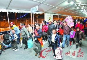 昨晚8時50分,琶洲異地候乘點(diǎn)開始轉(zhuǎn)運(yùn)春運(yùn)首趟列車旅客。 記者 陳安 攝