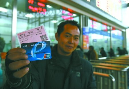 昨日,火車北站,第一位刷卡買到火車票的王先生。本組圖片記者 劉嵩 攝