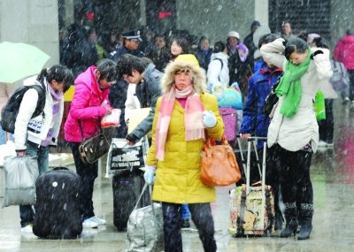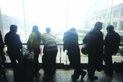 雨雪讓旅客的回鄉路變得有些艱難。 范曉林 攝