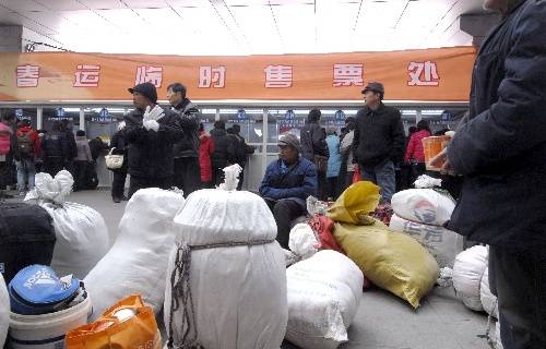 南京(江蘇),2011年1月9日 2011年春運首日火車票開始發售 1月9日,旅客在南京火車站售票大廳查看列車時刻表。 當日,2011年春運首日(1月19日)火車票開始發售。 新華社發(王新 攝)