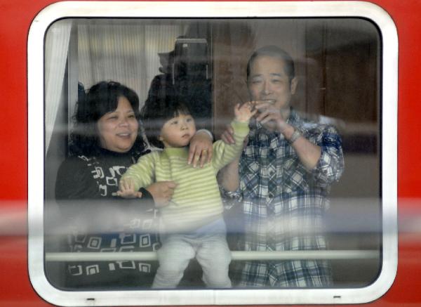 1月15日,在南京火車站一輛列車上,一對夫婦帶著孩子在車窗前玩耍。當(dāng)日,鐵道部召開全國鐵路春運(yùn)新聞發(fā)布會,向公眾介紹今年鐵路春運(yùn)的總體態(tài)勢和鐵路部門的準(zhǔn)備情況。今年鐵路春運(yùn)自1月19日起至2月27日,為期40天,預(yù)計全國鐵路發(fā)送旅客2.3億人次,同比增長12.5%。新華社發(fā)