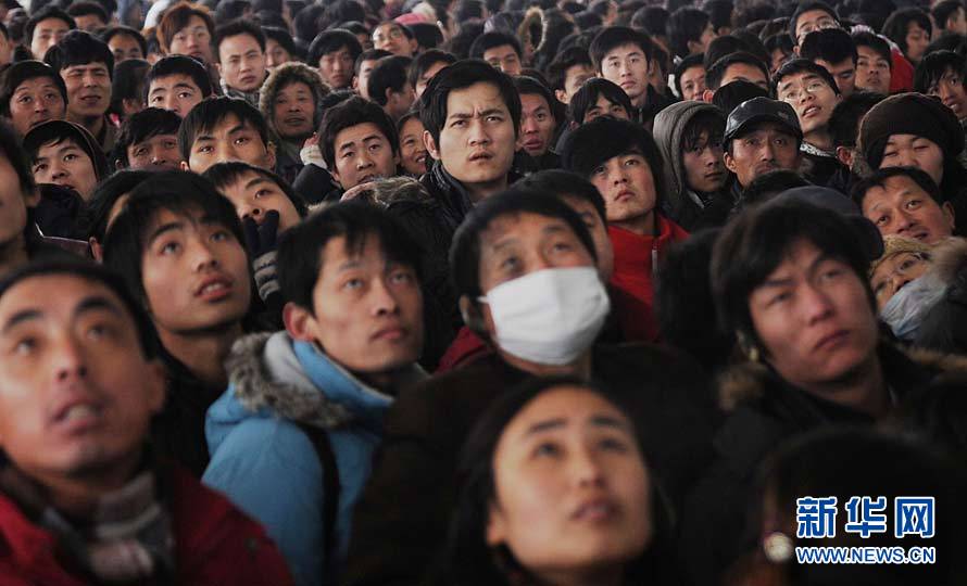 當日是2011年春運首日,其中的酸甜苦辣都映在旅客們的眼神之中。新華社發(鈕一新 攝)