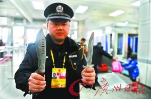 收繳管制刀具。記者喬軍偉攝