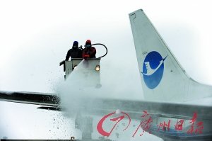 蕭山機(jī)場(chǎng),機(jī)翼除雪。CFP供圖