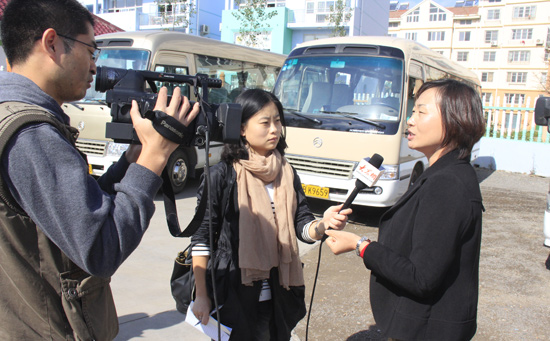 大眾網走基層問民生采訪小組走進下崖社區幼兒園對校車管理進行實地采訪。(曹亮 攝)