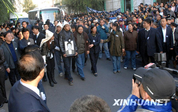 2009年10月11日,紀長秋的家人和數千市民送別紀長秋。新華社記者 蔣林 攝