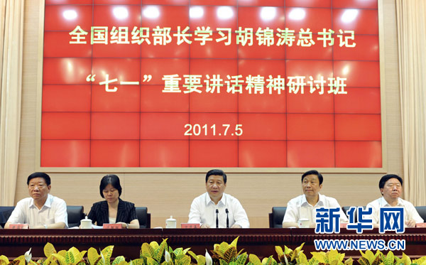 全國(guó)組織部長(zhǎng)學(xué)習(xí)胡錦濤總書記“七一”重要講話精神研討班5日在全國(guó)組織干部學(xué)院開班。中共中央政治局常委、中央書記處書記、國(guó)家副主席習(xí)近平出席開班式并講話。他強(qiáng)調(diào),胡錦濤同志“七一”講話是總結(jié)過去、開創(chuàng)未來的馬克思主義綱領(lǐng)性文獻(xiàn),對(duì)黨的建設(shè)和組織工作具有十分重要的指導(dǎo)作用。組織工作戰(zhàn)線的同志要帶頭深入學(xué)習(xí),在工作中切實(shí)貫徹,各級(jí)領(lǐng)導(dǎo)干部要努力學(xué)得更深一些、更好一些,以自己的模范行動(dòng)促進(jìn)和帶動(dòng)組織工作戰(zhàn)線學(xué)習(xí)貫徹的深入。