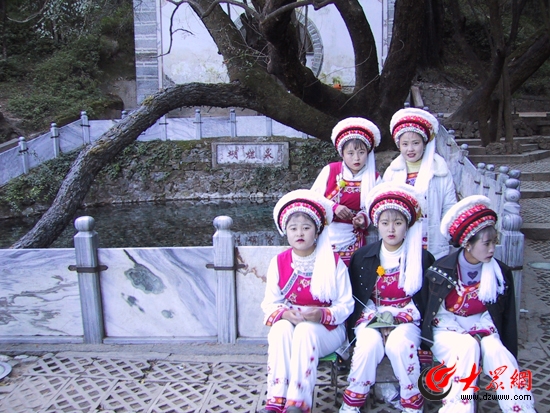 在周城采訪完后,我們來到了蒼山洱海之巔的著名的蝴蝶泉畔,5個白族的少女為我們演唱了這首《蝴蝶泉邊》,也叫《大理三月好風光》。 如今,在蒼山洱海邊,“金花”已經成為一個民族的名字。對任何一個白族姑娘,你只要叫一聲“金花”,就會和她像老友一樣了。在大理三塔,在蝴蝶泉邊,我們果真遇到了五位美麗的金花(這是發展旅游的人為安排),我們的采訪對象段紹升家里也有五朵金花(五個兒媳婦),這真是令人感嘆的巧合。