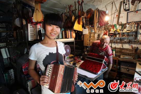 亞歷山大從15歲就開始演習(xí)修理手風(fēng)琴,30年來他都以此為生,因?yàn)槁殬I(yè)的便利,他也是一位手風(fēng)琴收藏家,目前已收藏了100多架世界各地的手風(fēng)琴。他十分樂于向朋友介紹他的收藏,小鋪里一排排貨架上擠擠挨挨的手風(fēng)琴。他會(huì)詳細(xì)地為客人講哪一架是德國(guó)的,哪一架是波蘭的,當(dāng)然還是俄羅斯的最地道,他一邊講一邊逐個(gè)彈奏一番,講解三排鍵雙排鍵和單排鍵各有什么特點(diǎn),樂此不疲。有些手風(fēng)琴盡管式樣陳舊,年代久遠(yuǎn),甚至有上世紀(jì)中葉制造的老古董,從擱架上取下來,拂去浮塵,照樣可以拉出悅耳的音樂。