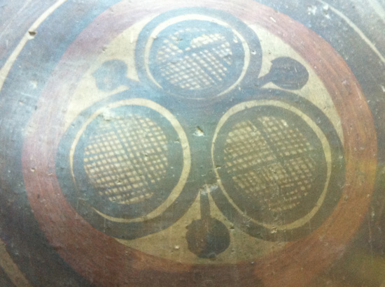 幾千年前的陶罐上的圖案,圓圈代表水,圓圈中的小格子代表田地。