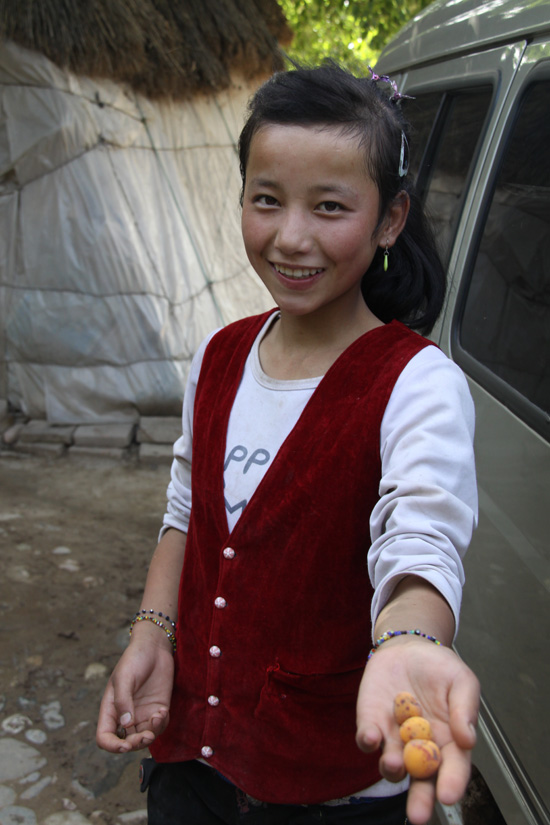 熱情的東鄉族姑娘阿英社拿出自家的山杏送給記者品嘗