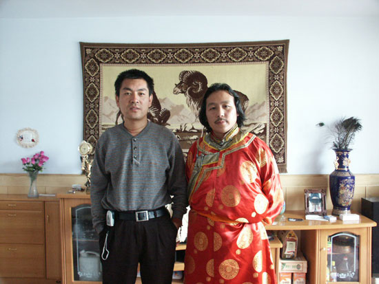 9年前的合影。雖然搬進了樓房,但處處能嗅到草原的氣息:一幅碩大的羊毛掛毯占據著大半面墻壁,圖案是草原、羊群、馬、氈包。鐵穆爾身材彪悍,留著長發,一幅西北游牧漢子的形象。