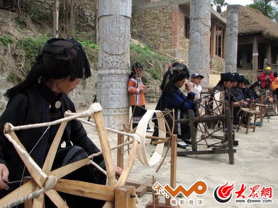 哈尼婦女紡紗。