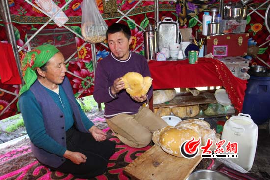 吐爾汗別克回到那拉提空中草原,在鄰居家中,手捧裝滿酥油的羊肚子,討論著今年的收成。