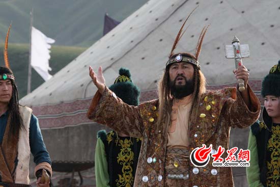 吐爾汗別克扮演烏孫國法師。他的身后是重達三點六噸的天鍋,一次可煮40只羊