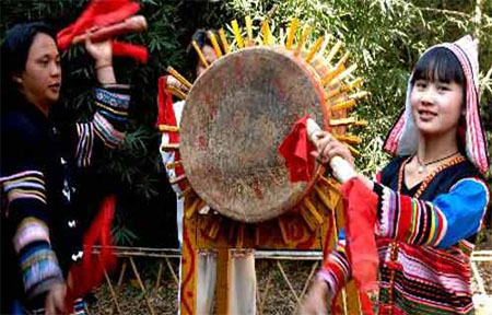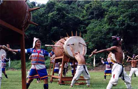 三是村寨長老卓巴、卓生家蓋新房時,須搭一簡易草棚放置大鼓,舉行祭鼓儀式后,敲鼓三聲即可開始舞蹈。過去"祭家神"、"打鐵節"跳大鼓舞時,婦女不得參加,只能站在大鼓后面,現今婦女也可站在大鼓前面舞蹈。