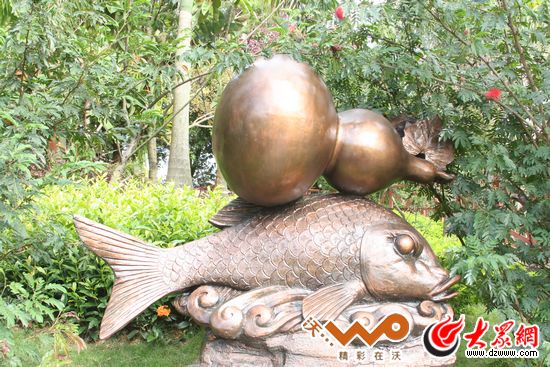 大魚接力將葫蘆背負游向岸邊。
