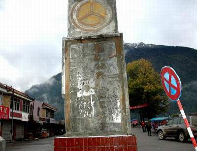 1994年,一條通往墨脫的泥土公路修成。這是位于林芝波密縣的墨脫縣初通公路紀念碑(10月16日攝)