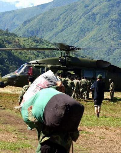 飛機為墨脫運送軍用物資和部分民用物資(10月21日攝)。1985年10月,成都軍區某陸航團首航墨脫成功。在此后的近20年間,陸航團的直升機無數次翻越多雄拉山口,將大型物資、設備等運進墨脫。