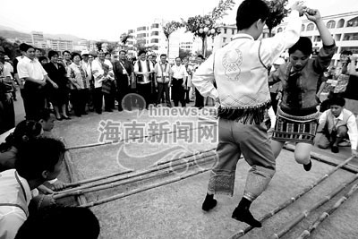黎族民間打柴舞 快樂的跳竹竿