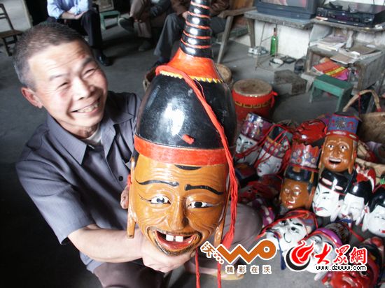 9年前拍的照片,民間肥套傳承人向記者展示他們的儺面
