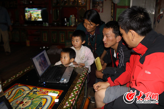 施曉亮打開電腦,門巴朋友看到十年前的照片,高興、感慨。