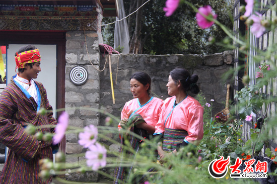9月12日是農歷的八月十五中秋節,也是門巴族“轉山”的日子(門巴族在藏歷每逢10、15、30轉山朝拜),下午,轉山的青年男女陸續從八一鎮回到村里。得知有漢族兄弟來訪,而且今天又是漢族的傳統節日中秋節。索朗次登和才旦卓瑪等6名門巴青年來到了村支書家,提議為采訪團表演門巴“鍋莊”慶祝中秋,同時也慶賀黨的90歲生日。