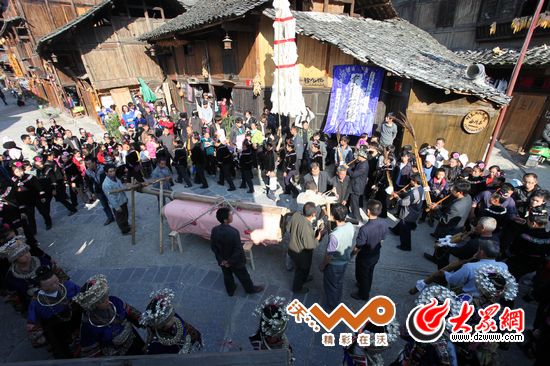 千戶苗寨里的一場傳統(tǒng)葬禮,因為逝者高壽,因此喪事當喜事辦