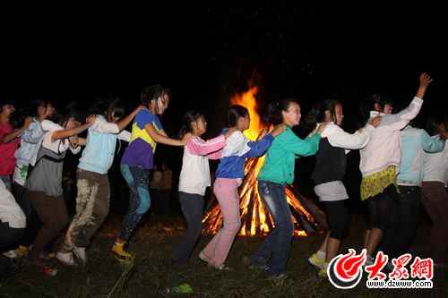 孩子們在篝火前跳起兔子舞