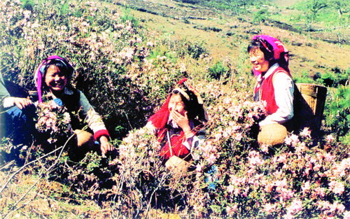 每年的這一天,天還沒亮,怒族人就會起來準備參加節日的活動。姑娘們穿起民族的盛裝,帶上準備好的祭品以及在山上進行野餐所需的食物,結伴從村寨出發,翻山越嶺前去仙女洞進行祭祀。仙女洞周圍事先已經掛好許多經幡和唐卡,穿紅黃教服的老人在祭臺的兩側坐著吹嗩吶、打鼓、敲鑼、念經文。前來祭祀的人們將一束束扎好的杜鵑花放在祭臺上,還將幾個玉米立在洞口,并把各種洗干凈的糧食堆成一小堆。主祭人燒起松煙后,整個祭祀儀式就開始了。主祭人先念祝辭,手持法器的喇嘛開始打鼓念經,大家在祭臺前叩頭獻貢。這時,整個洞口會插上很多松枝(象征吉祥如意、萬古長青)、鮮花(敬獻給“仙女”的禮物)和玉米(表示五谷豐登)。