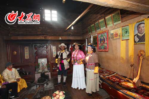 在普米傳統民居內聽普米族的傳統民歌,越聽越有味道.