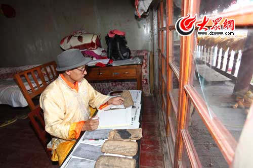 麥色偏初住在胡鏡明老人家中已經13年了,每天,只要不出門搜集散落民間的韓規經書,他就坐在窗前這個小桌前,整理抄寫韓規經文