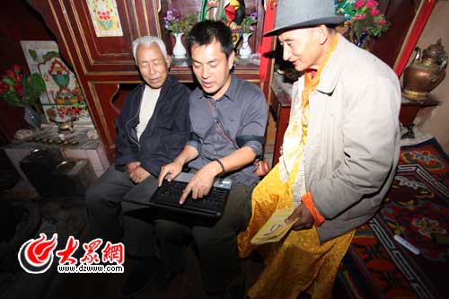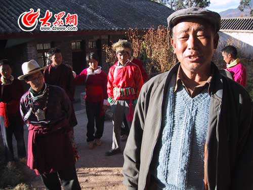 大眾網-聯通3G麗江9月29日訊(特派記者 王磊 特約記者 施曉亮)28日,“黨旗漫卷中國紅——走進56個民族家庭”采訪團離開瀘沽湖,來到麗江市下轄的寧蒗彝族自治縣。在81歲普米族德高望重的民族文化專家胡鏡明老人家中,我們不僅了解到了普米族鮮為人知的歷史,而且施曉亮也有意外收獲——他遍尋不見的十年前的采訪對象,都在胡老家中意外相遇:一位是十年前寧蒗縣新營盤鄉牛窩子村韓規文化學校從四川請來的韓規老師麥色偏初,另一位是十年前剛剛退休的縣民委副主任、韓規學校的發起人馬洪升,其實他們十年前就是與胡鏡明先生一起創辦韓規學校、致力于民族文化的保護。這十年來,以他們為首的十幾個普米族有識之士組成的普米文化保護中心,一直在竭盡全力進行搶救韓規經書、傳播普米文化的工作。這些老中青三結合的普米族精英,以民間的力量,或深入鄉間村寨收集即將消逝的經文、或潛心整理普米語傳統民諺匯編成冊,他們的努力最終得到政府的認可和支持,縣民族小學特別開設了“普米班”。麥色偏初十年間教出的17名徒弟也像當年的他一樣,正在教普米族的娃娃們普米文和本族的傳統習俗。