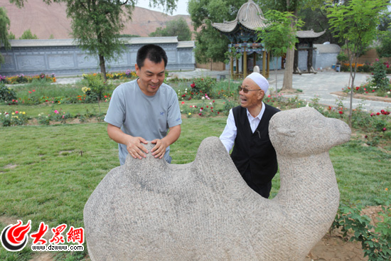 施曉亮與韓占祥在駱駝旁回憶9年前采訪時的情景