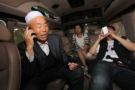 在家里、街上唱歌不方便,韓占祥就在我們的公羊采訪車上與濟南電臺直播連線,唱一首撒拉族的花兒。