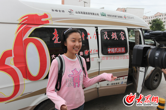 施曉亮:那并不是結婚的時候,從帽子就能區分出少女、媳婦兒、老年婦女,具體的我還講不太清楚,今天的時間比較短,我不想講得太多,今天有一位比較特殊的主講人,也是我的小隊員,她叫李思琦,15歲,是我的一個好朋友山東大眾報業集團下轄的一個刊物的主編,吳磊的干女兒,他給我介紹過來,從銀川入隊,今天要離隊了,這十天來她有非常多的感受,她跟著我走過了五個民族,十多天,回族、東鄉族、撒拉族、保安,以及現在的土族,那么她即將離隊的時候,她有非常多的話,她的經歷、她的感受想和濟南的朋友們分享,因為小孩子嗎,和我的女兒一樣大,就比我的女兒整整大一年。所以說他們這種年齡的視角和我們大人的視角是完全不一樣的。且聽我們看來是孩子,但是他們的心理承受度,覺得已經把自己認做完全是成人的這么一個女孩子,她對這十多天的見聞和感受。