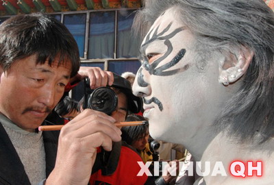 同仁縣年都乎村二郎神廟院內,一名小於菟在化裝。
