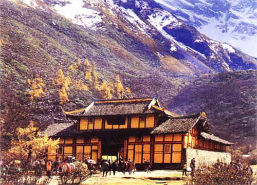 黃龍寺位于四川省松潘縣黃龍溝景區(qū)的頂端,距黃龍溝口約3.5公里。背倚玉翠峰,面向黃龍谷,是一座古樸大方的木結(jié)構(gòu)建筑。建于明代,因相傳黃龍真人養(yǎng)道于此,故名。共有前、中、后三寺,全部隨山勢(shì)而建,規(guī)模宏偉,風(fēng)格獨(dú)特,現(xiàn)存有觀音殿、十八羅漢塑像等。寺后有一黃龍洞,深不見底,洞內(nèi)遍布鐘乳石,千姿百態(tài)。洞中還有建于明代的三尊坐佛,如今身上已披滿鈣化結(jié)晶,是人工與天工完美結(jié)合的產(chǎn)物。