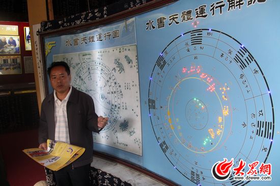 現在的研究館里,還懸掛著一幅影印的“水族天體運行圖”至今無人可解,或又是永遠無人讀懂的天書。左是影印圖,右邊為示意圖