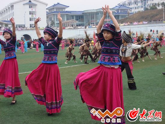 千余名大學(xué)生身著傳統(tǒng)土家族服飾,跳起了穩(wěn)重粗獷、健美有力的土家擺手舞蹈
